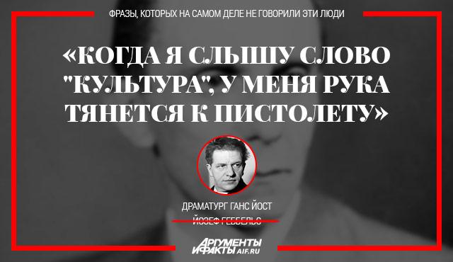«Когда я слышу слово «культура», у меня рука тянется к пистолету», — Йозеф Геббельс