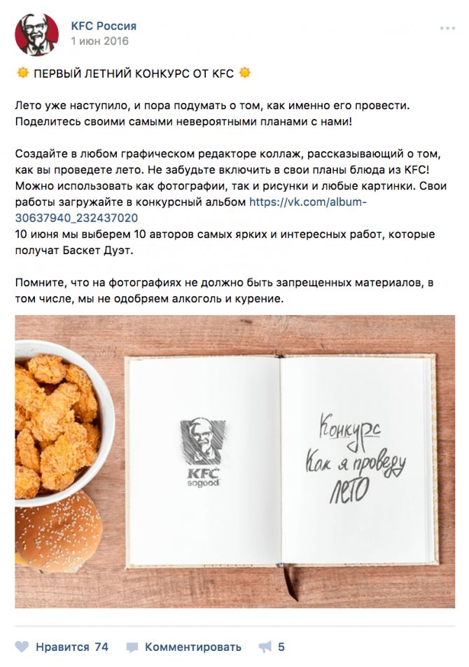 Устройте в честь первого дня лета конкурс. Пусть ваши подписчики расскажут о своих планах на лето. Если в механике конкурса будет публикация на своей странице с упоминанием вашего бренда, вы получите дополнительный органический охват и сможете привлечь, только целевую аудиторию.