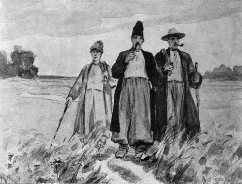 | Внешность Оба брата носили красные сафьяновые сапоги, подкованные серебром. На голове чёрные шапки их меха барана, верх у шапок обделан золотом. На ногах широченные шаровары. В ярко-алые полукафтаны, подпоясанные узорчатым поясом, воткнуты турецкая сабля и пистолеты. |