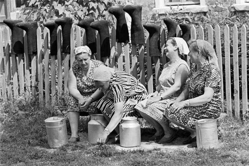 Где коровы, там и молоко. Брали деревенское, лучше из своей деревни — парное. Но в иные годы покупали и в соседних деревнях, и на ферме. Как правило, трёхлитровый бидончик, позже трёхлитровую банку: её удобно везти в сумке на велосипеде — на багажник пристроить. Ягоды с молоком, молоко с хлебом… да всё. В вашем молоке кровь не обнаружена…