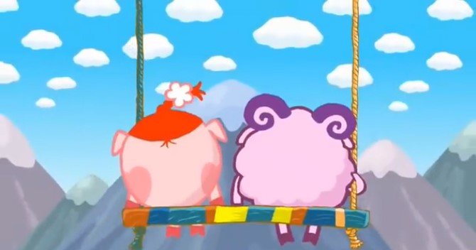 Нюша встретила Бараша на пороге своего дома, придирчиво осмотрела ведро и дала добро на ГОРЫ. И вот они уже на качелях – сидят и смотрят на заснеженные вершины. Точнее, смотрит Бараш, а Нюша шуршит фантиками и урчит начинками. Барашу мир кажется волшебно красивым, Нюше – восхитительно вкусным. Но… все когда-нибудь кончается. И конфеты тоже.
