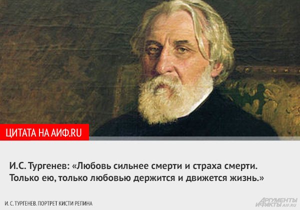 Любовь сильнее смерти и страха смерти. Только ею, только любовью держится и движется жизнь (Отцы и дети).