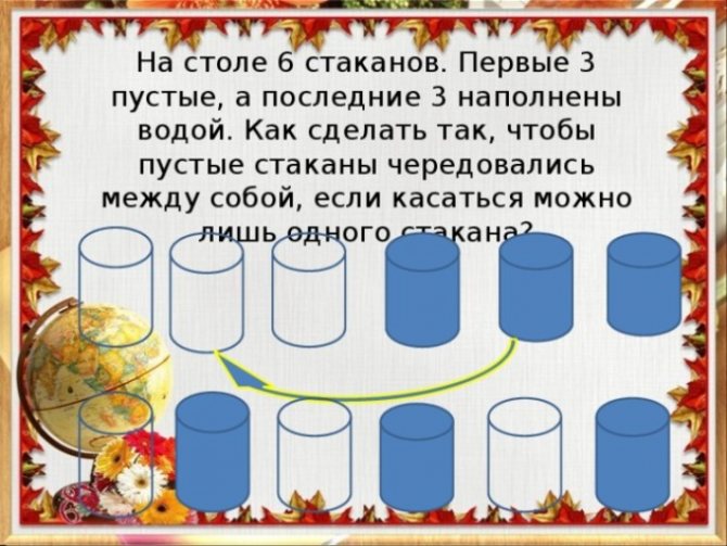 - Сколько горошин может войти в один стакан? (Ответ — нисколько, горошины не ходят.)